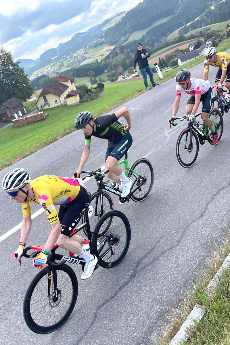 Ebenfalls mit dem Rennrad startete ich am 28. September beim Mühlviertler Hügelwelt Classic in Königswiesen, meinem diesjährig einzigen Start beim Road Cycling League Austria. Die Runden durch die hügelige Landschaft mit 121 Kilometer und mehr als 2.700 Höhenmeter konnte ich unter den mehr als fünfzig österreichischen Straßenradprofis gut mithalten und schließlich Rang sechs erreichen. Hier siegte nach 3:05:10 Alexander Konychev (Team Vorarlberg) vor Riccardo Zoidl (Hrinkow Advarics).