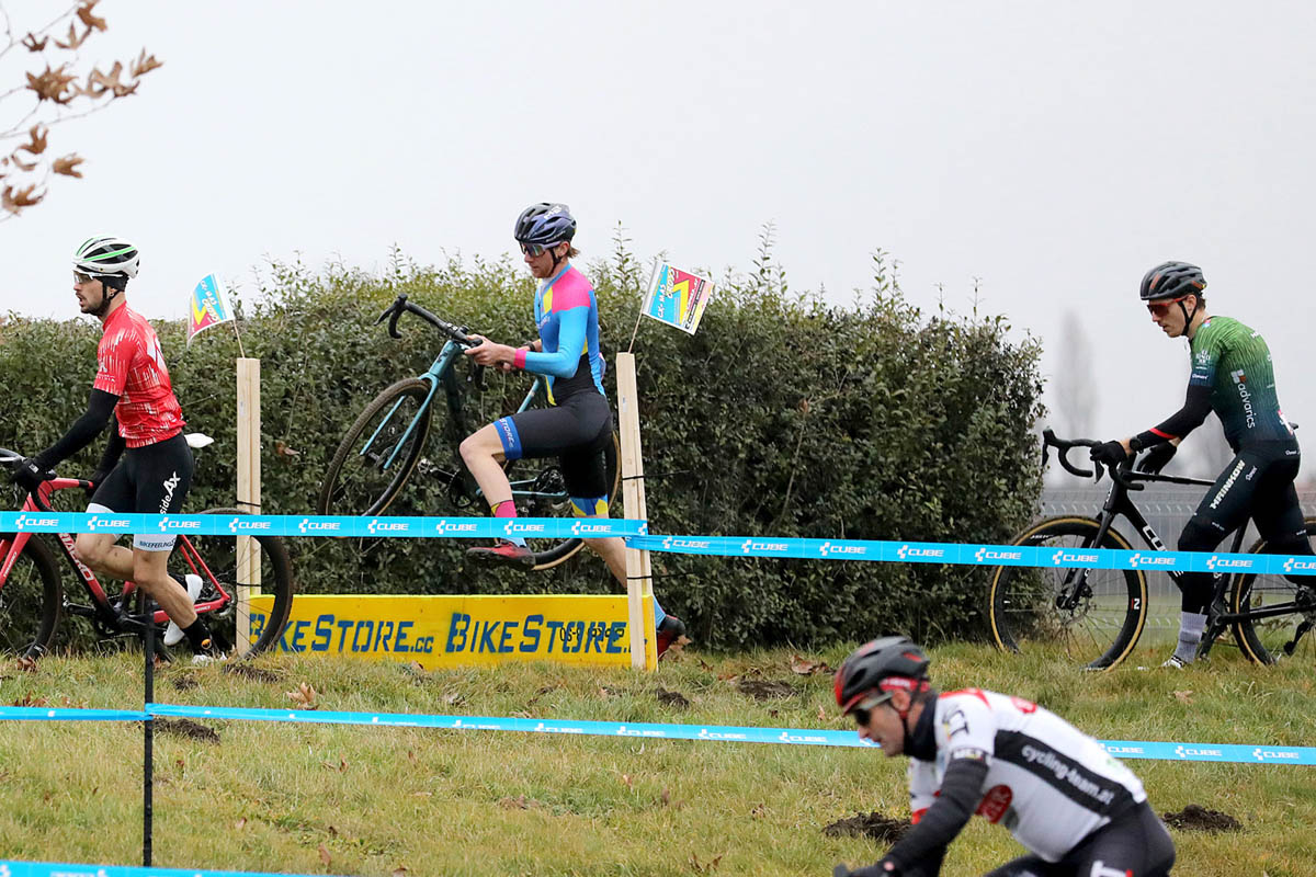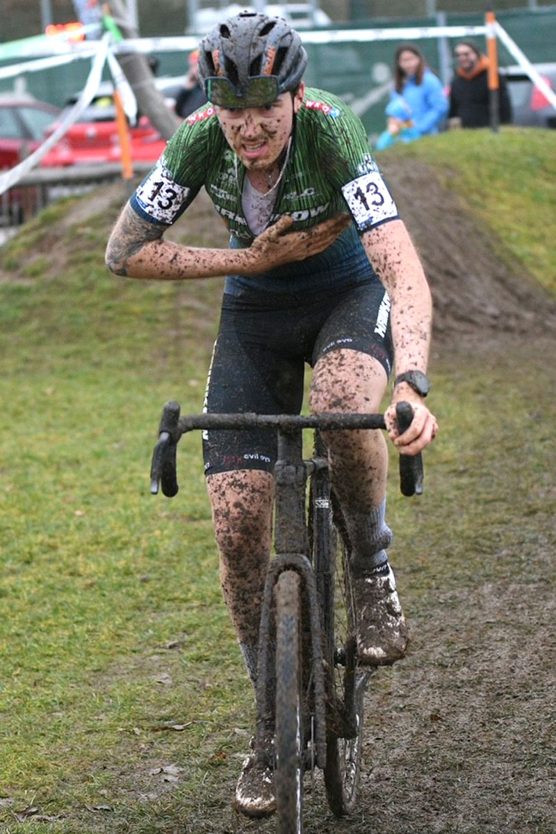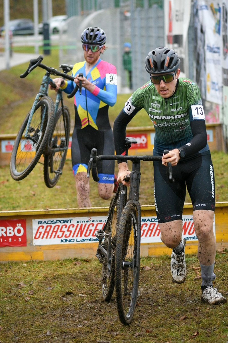 Tags darauf am 8. Dezember stellte ich mich der Herausforderung beim Querfeldein Grand Prix (UCI C2) in Gunskirchen (OÖ). Bei milden Temperaturen galt es im international hochkarätig besetzten Starterfeld tiefe Schlammpassagen, zahlreiche Schrägfahrten und steile Rampen zu bezwingen. Den souveränen Sieg sicherte sich der belgische Topfahrer Lander Loockx, gefolgt vom Tschechen Matyáš Fiala. Eine besonders starke Performance zeigte Valentin Hofer (Cannibal B Victorious), der bei seinem ersten Eliterennen beeindruckend den dritten Platz belegte. Ich selbst kämpfte mich nach einem verpatzten Start, der mich schon an der ersten Rampe weit zurückwarf, wieder nach vorne und belegte schließlich als drittbester Österreicher Rang elf.